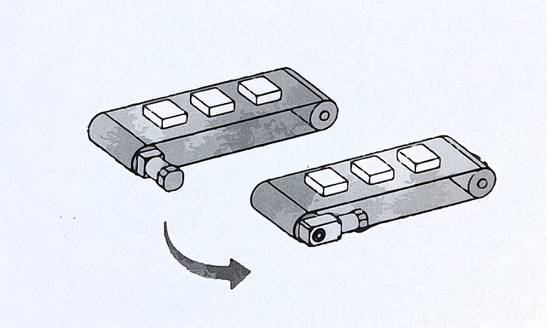 直交轴减速机的输出轴位于安装面上下方向的中心处的构造,安装在输送等装置的时候,不管安装方向是向左边还是向右边,都不需要改变安装孔的位置。图下图所示: